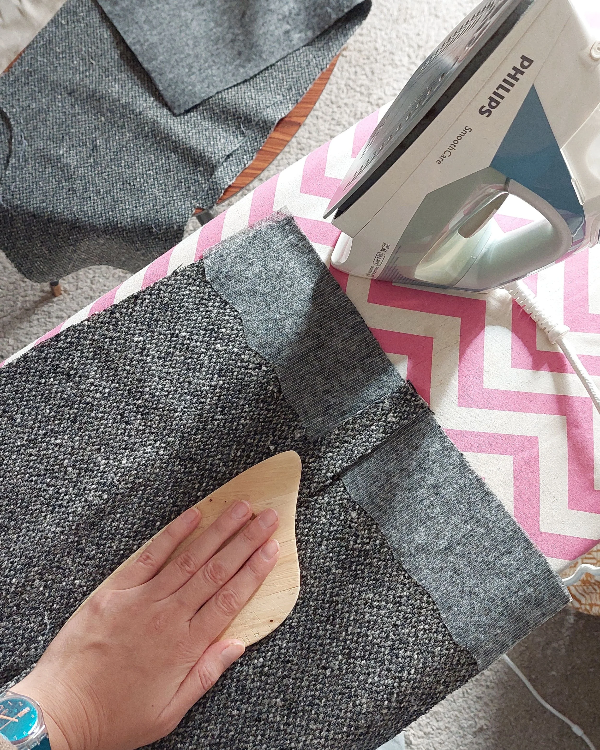 One thing I learned while making wool coats (apart from realizing that making a wool coat is an art form of its own) is that pressing isn’t just about holding your iron on top of the seam. Once you lift your iron, the leftover hot steam can be locked into the seam to make it even better.