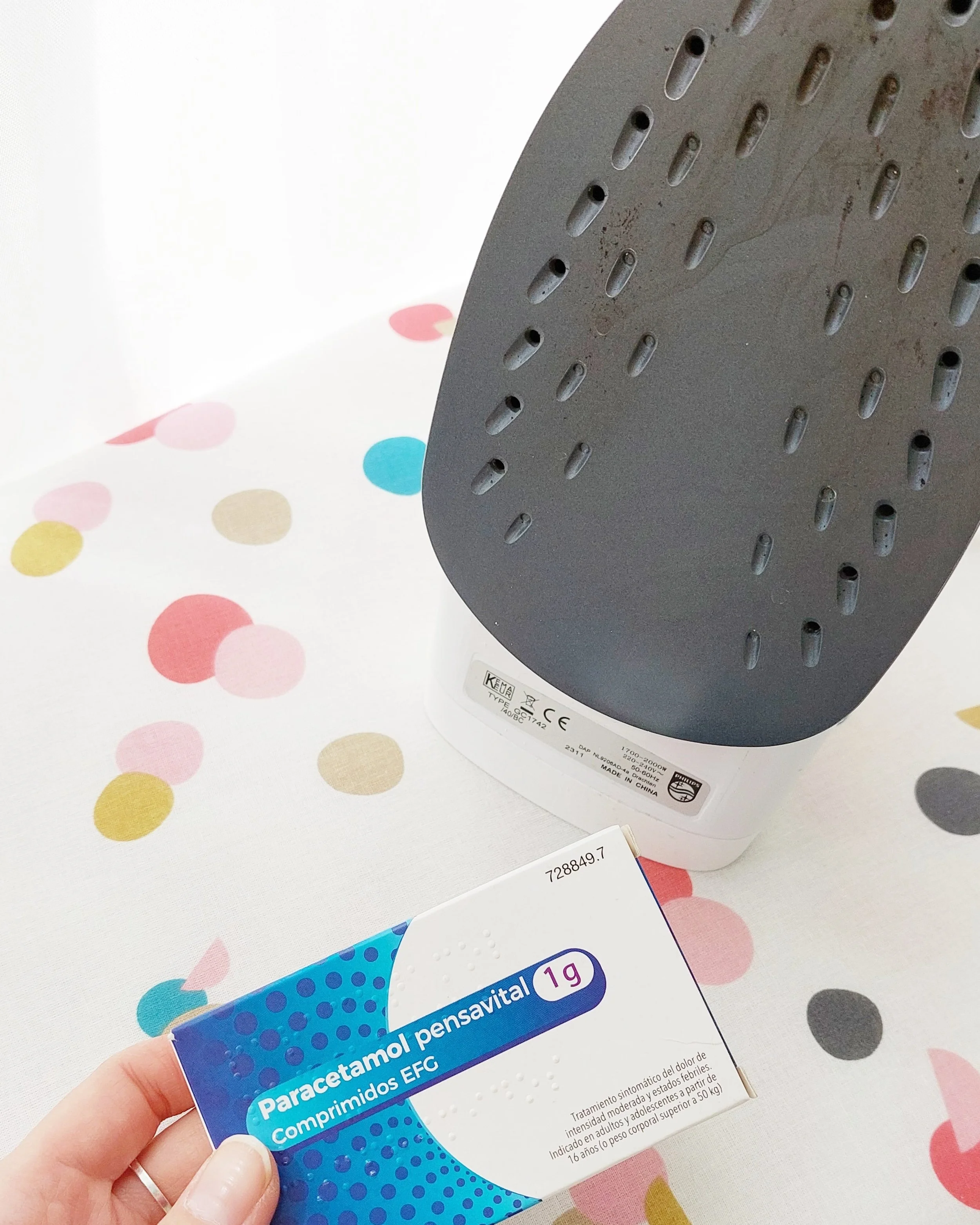 Pedí ideas (y socorro) en Instagram, y mucha gente sugirió el paracetamol (algunos sugirieron tirar la plancha... gracias, pero no, gracias, majas). Creo que lo había oído antes, pero no tenía ninguna confianza en esa solución. Y, como tantas otras veces en mi vida, resultó que me equivocaba. De hecho, sí que funciona.